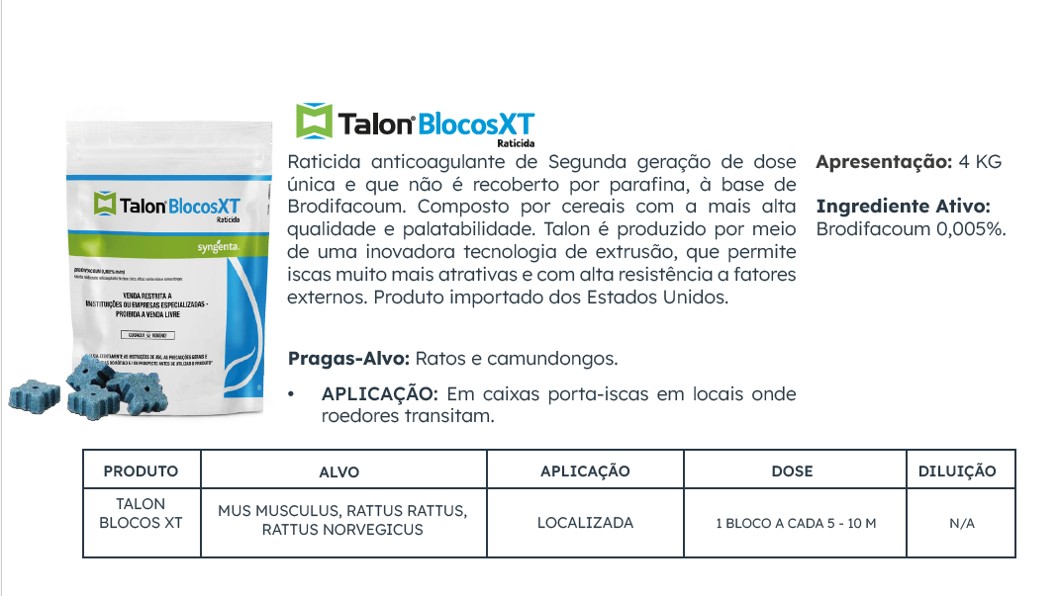 Informações extras do produto Talon Blocos XT ( Raticida EXTRUSADO)