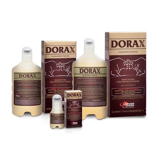 A doramectina é um potente endectocida do grupo das avermectinas. Em comparação a outros representantes do grupo, a doramectina atinge concentrações mais altas e duradouras nos tecidos infectados, assegurando a sua eficácia e o longo período de ação. Dorax é indicado para o tratamento e controle das ecto e endoparasitoses dos bovinos. Atua contra verminoses gastrointestinais e pulmonares e contra carrapatos, piolhos e ácaros (sarnas). Devido à melhor distribuição na pele, Dorax é particularmente recomendado na prevenção de miíases (bernes e bicheiras) após castrações, descornas e demais procedimentos cirúrgicos. O produto apresenta elevada segurança, podendo ser aplicado em animais jovens, fêmeas prenhes, animais debilitados e machos em reprodução. Além disso, não provoca reações no ponto de aplicação.
