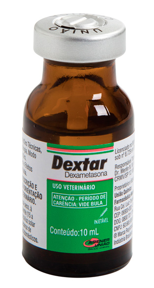 A dexametasona é um anti-inflamatório esteroidal (hormonal) potente e de ação imediata. A formulação em base de fosfato possibilita a distribuição rápida pelos tecidos orgânicos sem acumular-se no organismo. Além disso, a dexametasona não altera a pressão arterial porque não retém sódio e água. Dextar é recomendado para o tratamento de processos inflamatórios, dermatopatias alérgicas, reações alérgicas (anafiláticas ou não), choque, insuficiência adrenal, cetose bovina primária, febre do leite e febre do transporte.