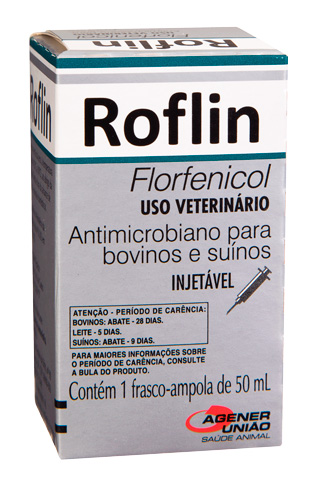 Roflin é um antimicrobiano injetável, à base de florfenicol, indicado para bovinos. Trata-se de um novo antibiótico sintético com atividade bacteriostática por meio da inibição da síntese proteica dos microrganismos susceptíveis. O florfenicol não é desativado pela enzima acetil-transferase, responsável pelo principal mecanismo de resistência bacteriana ao cloranfenicol e ao tianfenicol. Há ainda outra diferença estrutural que reduz o potencial aplásico sobre a medula óssea dos animais tratados. O produto atinge pico de concentração plasmática em cerca de 3 horas após a administração, mantendo-se níveis terapêuticos por um período de até 48 horas. Nos pulmões, as elevadas concentrações atingidas permitem atividade bactericida durante as infecções respiratórias. Roflin é indicado para o tratamento de infecções gastrointestinais (diarreias), infecções respiratórias (pneumonias), pododermatites, metrites e ceratoconjuntivite infecciosa. Também pode ser utilizado na prevenção de doenças respiratórias antes do transporte ou em situações de estresse.